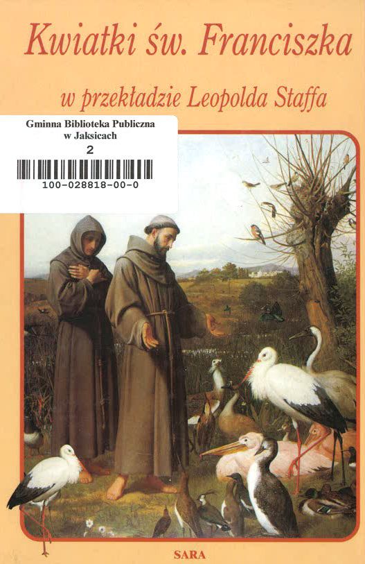 "I tym razem święty Franciszek okazał się wymagający i poprosił go jeszcze: – Bracie wilku, tak jak za bramą mnie, tak teraz przed całym ludem zechciej przypieczętować nasz pakt swoją łapą, co będzie świadectwem szczerości i gwarancją moich gwarancji. Wtedy wilk podał łapę świętemu Franciszkowi. Wielka radość zapanowała w całym mieście z tego powodu. Z powodu pokoju z wilkiem, nowości przeżywanego cudu i wdzięczności dla świętego Franciszka. Ludzie wznosili oczy ku niebu i błogosławili Boga, krzyczeli o chwale świętego, który w tak cudowny sposób uwolnił ich od kłów okrutnej bestii." Święty Franciszek z Asyżu (1181–1226), syn bogatego włoskiego kupca, był wędrownym kaznodzieją i założycielem zakonu franciszkanów. Zwany Biedaczyną z Asyżu żył w ubóstwie i dawał innym przykład pokory, czystości oraz miłości do ludzi i natury. Zgromadził przy sobie wielu zwolenników, którzy tak jak on naśladowali Chrystusa, głosząc kazania, pomagając biednymi opiekując się chorymi. Czyny i cuda świętego Franciszka spisał po łacinie brat Ugolino w latach 1327–1340. Następnie anonimowy pisarz toskański przetłumaczył ten zbiór 53 opowiadań na język włoski i tak powstały Kwiatki świętego Franciszka – niezwykła książka pełna miłości i poezji, bogata w walory duchowe i literackie. Lektura dla klasy I gimnazjum i klasy I szkoły średniej.