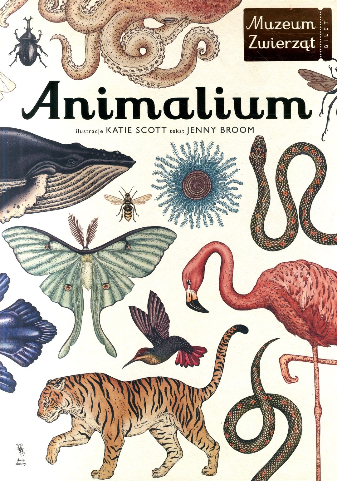 Imponujący atlas zwierząt pełen całostronicowych ilustracji w stylu starych zoologicznych rycin. Witajcie w Muzeum Zwierząt! Znajdziecie tu najpiękniejsze i najbardziej niezwykłe istoty, jakie mieszkają na Ziemi. Okazy pradawne i współczesne, olbrzymie i maleńkie, groźne i bezbronne. Zapraszamy odwiedzających w każdym wieku, 24 godziny na dobę, 7 dni w tygodniu. Nie musicie wychodzić z domu - to wyjątkowe muzeum zamknięte jest w książce! Na ilustracjach przypominających ryciny ze starych ksiąg czeka na was ponad 160 gatunków ze wszystkich zakątków świata. Zwięzłe opisy przybliżą wam ich najbardziej charakterystyczne cechy, a krótkie, treściwe teksty rozdziałów opowiedzą o różnych grupach zwierząt i ich środowiskach naturalnych. Sięgnijcie po „Animalium” i odkryjcie bogactwo królestwa zwierząt.