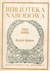 Kazania sejmowe / Piotr Skarga ; oprac. Janusz Tazbir ; współaut. oprac. Mirosław Korolko. - Wyd. 3 zm i uzup. - Wrocław : Zakład Narodowy im. Ossolińskich, 1972. - CVI, 196,[2]s.,[2]s.tabl. : faks. ; 17 cm.