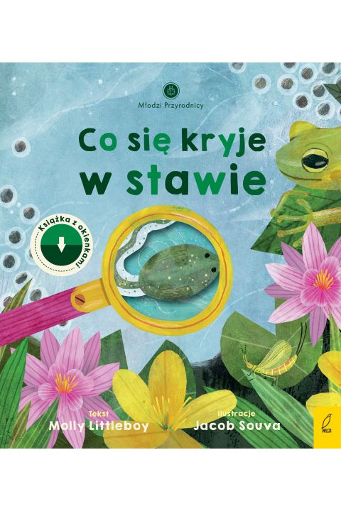 „Młodzi Przyrodnicy: Co się kryje” to seria wciągających książek dla ciekawskich dzieci, które chcą poznać świat przyrody z bliska. Dzięki bogactwu faktów i ciekawostek będziesz mógł lepiej poznać otaczającą Cię naturę i dowiedzieć się, m.in. dlaczego drzewa zrzucają liście na zimę albo jakie gniazda budują poszczególne gatunki ptaków. Wszystko za sprawą otwieranych okienek, które zachęcają do odkrywania przyrody na własną rękę. Na każdej stronie czekają zdania do wykonania – budowa karmnika, zasianie roślin, polowanie na dżdżownice, to tylko niektóre z nich. Poznaj świat ptaków, roślin, podwodny, drzew oraz najmniejszych na ziemi stworzeń i dowiedz się, jakie tajemnice skrywa natura. Wspaniały świat stawów czeka na odkrycie! Jak kijanki stają się skaczącymi żabami? Jaki jest najlepszy sposób na kąpiel w stawie? I kogo można spotkać w czasie wypoczynku nad wodą? Pod okienkami kryją się wiadomości o mieszkańcach stawów, liczne wskazówki dla młodego odkrywcy, a także podpowiedzi, jak dbać o dziką przyrodę. Zajrzyj do środka i odkryj tajemnice natury!