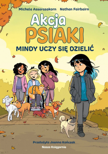 Mindy, Gabi i Prija mają się świetnie! Firma oferująca psie spacery działa coraz lepiej, a dziewczynki stają się sobie bliższe niż kiedykolwiek. Jednak w życiu Mindy zachodzi ogromna zmiana – jej mama zaczyna się spotykać z pewnym paskudnym typem. Na jego korzyść nie przemawia nawet fakt, że jest właścicielem uroczego kocura Grubera. Od zawsze Mindy trzymała z mamą sztamę i świetnie sobie żyły we dwójkę. Czemu nagle miałoby się to zmienić? Na domiar złego w szkole pojawia się nowa uczennica, Hazel. Jest przesympatyczna i wszyscy ją lubią. Ale Mindy wie swoje. „Nowa” chce zająć jej miejsce – zarówno u boku przyjaciółek, jak i w ekipie PSIAKÓW. Czy Mindy uda się pokonać własne lęki i zrozumieć, że szczęściem najlepiej się dzielić? Nathan Fairbairn jako dziecko dużo się prze­prowadzał, ale gdziekolwiek trafiał, wokół było mnóstwo zwierzaków i komiksów, więc był szczęśliwy. Nathan kocha tworzenie komiksów. Pracował przy wielu jako kolorysta, od ważnych superbohaterskich jak „Spider-Man” czy „Wonder Woman” po niezależne jak „Scott Pilgrim”. Poza tym, że dużo kolorował, troszkę pisał. Stworzył kiedyś scenariusz powieści graficznej „Lake of Fire” o ban­dzie rycerzy walczących z obcymi. Naprawdę lubi pisanie i ma nadzieję, że w przyszłości będzie mieć ku temu więcej okazji. Mieszka teraz w Vancouver i stara się przepro­wadzać jak najmniej. Michele Assarasakorn dorastała w Bangkoku zafascynowana mangą i animacją. Studiowała design koncepcyjny w filmie i grach wideo w Toronto. Po ukończeniu nauki jakiś czas pracowała, tworząc grafiki koncepcyjne, później jako kolorystka dla DC, Marvela, Image i Dark Horse’a. W wolnym czasie podróżuje po świecie i doku­mentuje swoje przygody w postaci ilustracji. Jej prace przykuły uwagę Nathana Fairbairna – tak zaczęła się jej przygoda z komiksem!