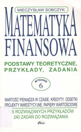 Matematyka finansowa: podstawy teoretyczne, przykłady, zadania / Mieczysław Sobczyk. - [Wyd. 5]. - Warszawa : Placet, 2003. - 358 s. : tab., wzory ; 24 cm.
