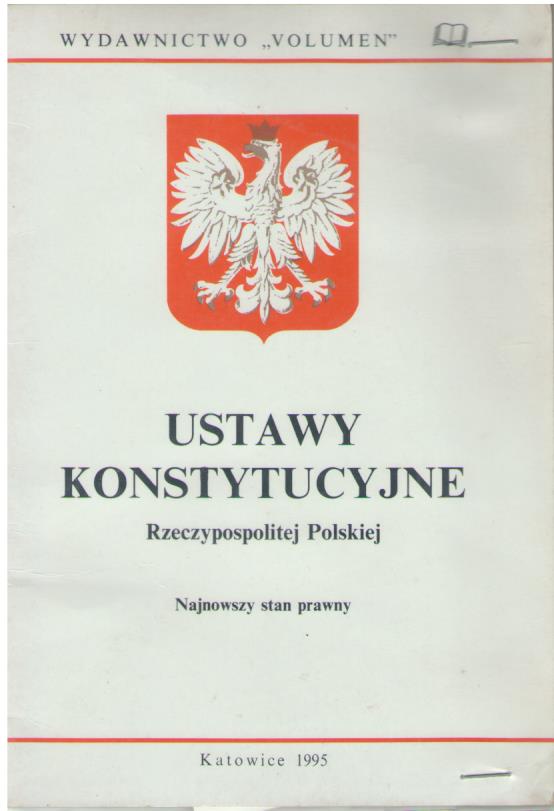 Wyd. 1 pt. : Konstytucja Rzeczypospolitej Polskiej. - Koniec tekstu na s. 3 okł.